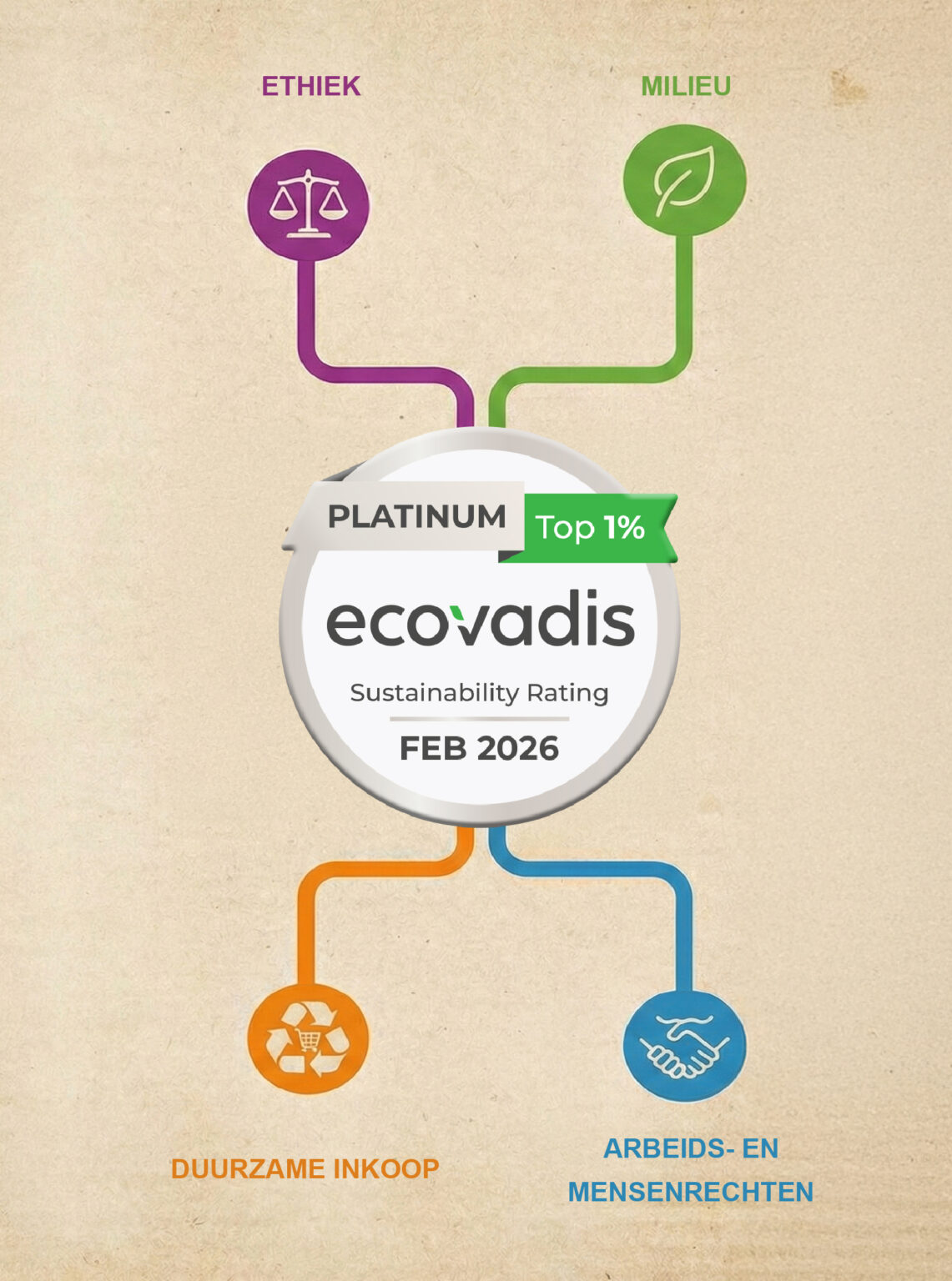 EcoVadis beoordeelt bedrijven wereldwijd op vier kerngebieden: